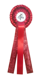 På båndet trykkes teksten:“Årets konfirmand” + navn og årstal. Den matchende roset til hesten monteres i trensen. På den midterste hale på hesterosetten kan der også trykkes tekst – fx konfirmandens navn, hestens navn eller årstal. Det giver et smukt og gennemført udtryk og skaber nogle helt særlige billeder fra dagen.