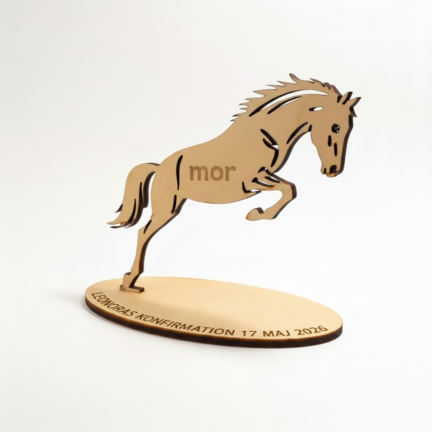 Gør dit festbord ekstra smukt med vores elegante heste‑bordkort skåret i 3 mm birkefinér af høj kvalitet.