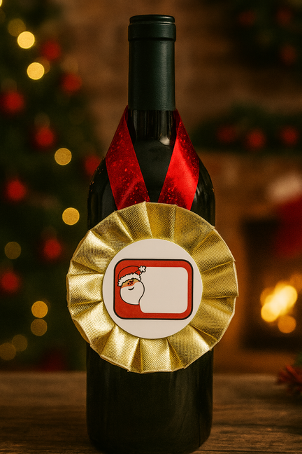 Rosetten har en fin løkke, så den nemt kan hænges om halsen på en flaske, men man kan også sætte den på pakken med et lille stykke tape. På rosettens bagside er der plads til at skrive en ekstra lille hilsen.