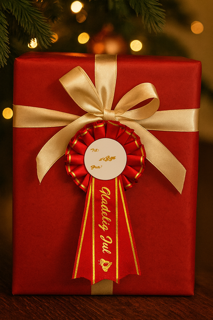 Små festlige rosetter som til/fra kort på julens pakker - ja hvorfor ikke?