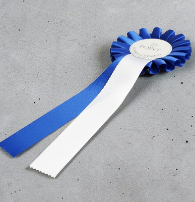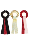 Denne model anvendes ofte som deltagerroset ved stævner, men er også meget populær til børnedyrskuer og events, hvor man ønsker en flot roset til mange deltagere.
